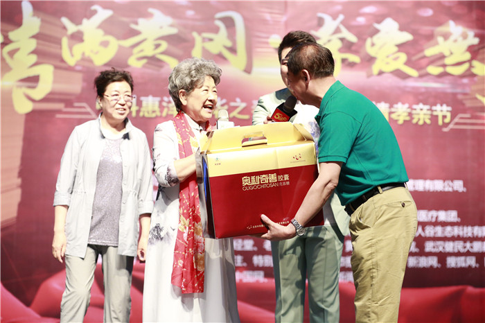 除此之外,抗癌英雄代表還有我們的陶玉玲老師。很難想象,這位在舞臺上歌聲嘹亮的老藝術(shù)家曾是三次癌癥患者。讓我們在敬佩的同時(shí),心生感動(dòng)?;顒?dòng)現場(chǎng),來(lái)自中國科學(xué)院大連化學(xué)物理研究所1805課題組的曲天明總工程師、白雪芳研究員,以及來(lái)自大連中科殼寡糖研究中心副主任王欣,為我們可敬可愛(ài)的抗癌斗士陶玉玲老師,送上一份珍貴的禮物。