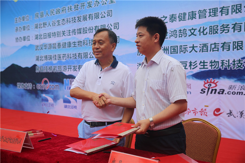 2016年810日上午北京中科惠澤張樹(shù)林董事長(cháng)與房縣紀道清紀縣長(cháng)簽署了野人谷生態(tài)養生養老基地項目投資協(xié)議。