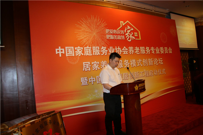 2016年5月6日,“中國家庭服務(wù)業(yè)協(xié)會(huì )養老服務(wù)專(zhuān)業(yè)委員會(huì )居家養老服務(wù)模式創(chuàng )新論壇暨中國康養旅居創(chuàng )新工程啟動(dòng)儀式”大會(huì )在北京的江西大廈大會(huì )議廳隆重召開(kāi)。