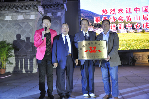 隨后舉行了簡(jiǎn)短的“中國家庭服務(wù)業(yè)協(xié)會(huì )黃山居家養老培訓中心成立授牌儀式”。張文范會(huì )長(cháng)與韓兵副會(huì )長(cháng)一道,向湯小忠書(shū)記頒授了“中國家庭服務(wù)業(yè)協(xié)會(huì )黃山居家養老培訓中心”的牌匾。